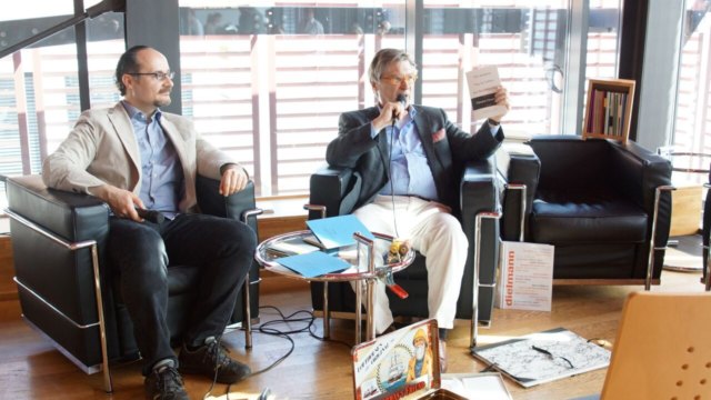 Eröffnung der Literaturwoche Donau 2018 mit Hernan Ronsino & Luis Ruby (Übersetzer), Gespräch mit Verleger Ricco Bilger.